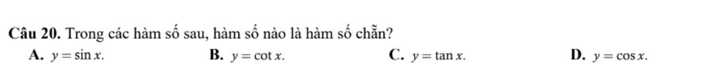 `->` Hàm số `y = Cosx` là hàm số chẵn
