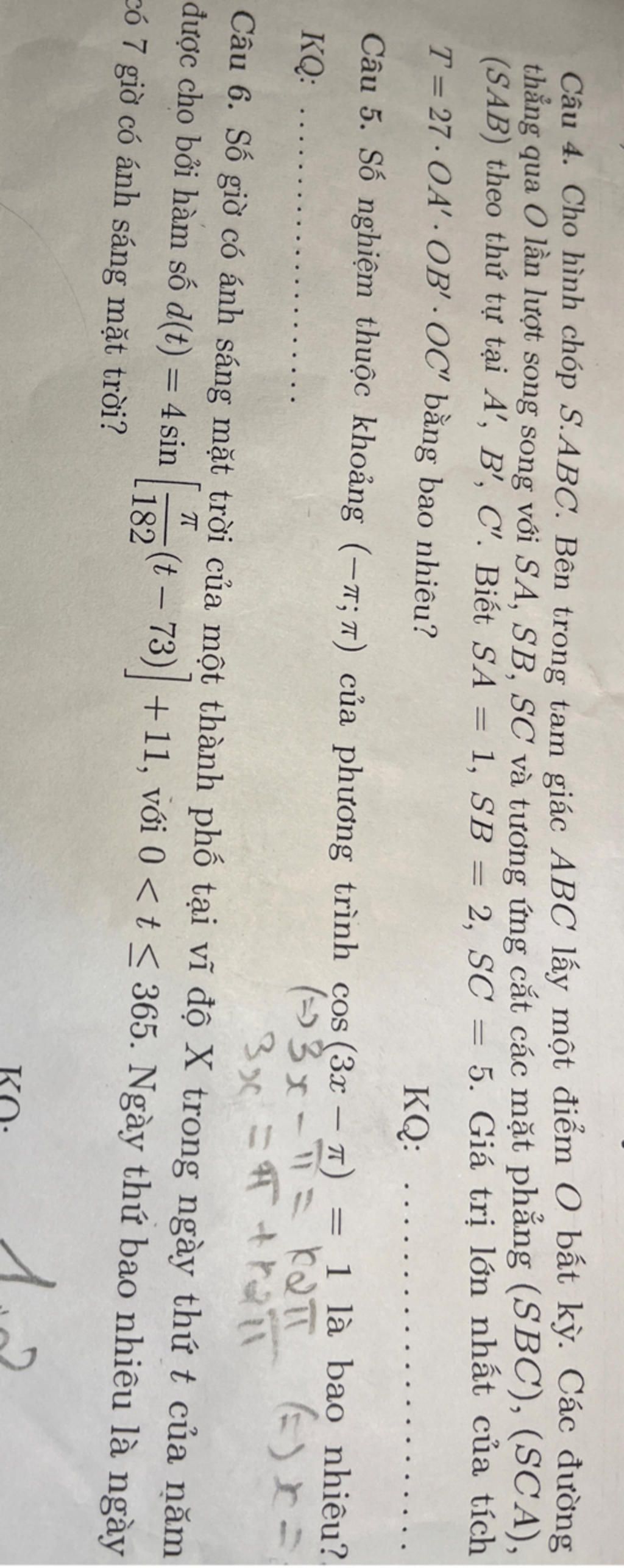 Câu 4. Cho hình chóp S.ABC. Bên trong tam giác ABC lấy một điểm O bất kỳ. Các đường