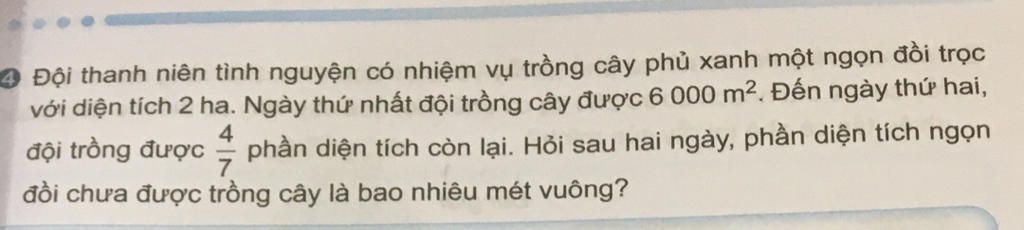 Sau hai ngày phần diện tích còn lại chưa được trồng cây là: