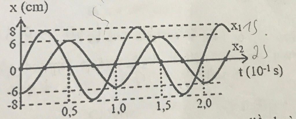 Kh Dựa vào đồ thị li độ-thời gian của vật 1(X1) vật 2(X2) dao động điều hoà dưới đây. Xác định: