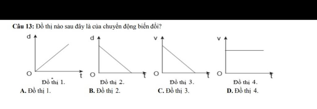 Đồ thị 3 là của chuyển động biến đổi vì vận tốc thay đổi theo thời gian.