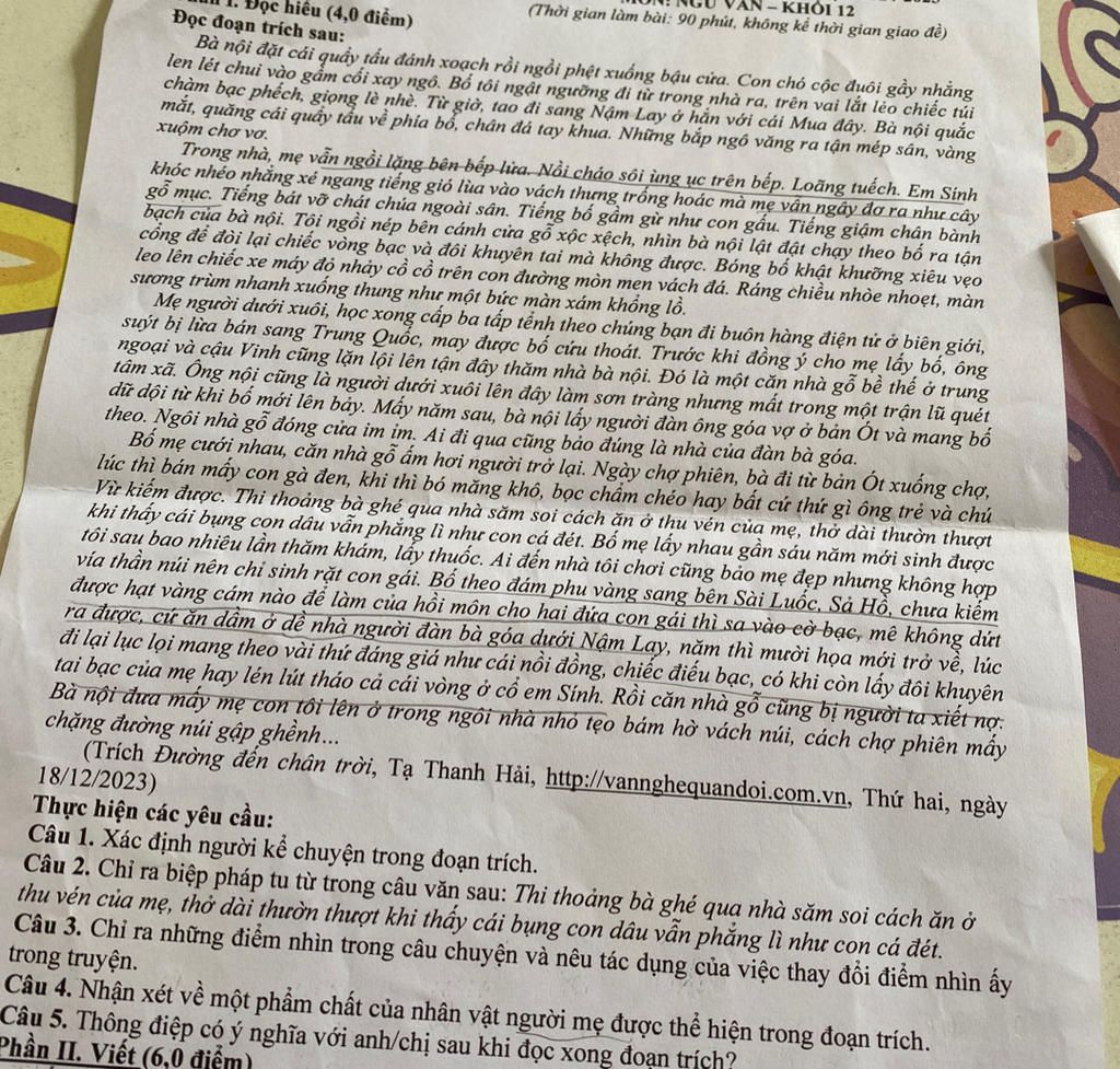 len lét chui vào gầm cối xay ngô. Bố tôi ngất ngưỡng đi tử trong nhà ra, trên vai lắt lẻo chiếc túi