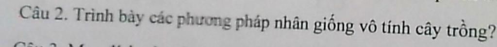`*` Phương pháp nhân giống vô tính: phương pháp tạo cây mới từ cơ quan sinh dưỡng của cây mẹ. Trong đó: