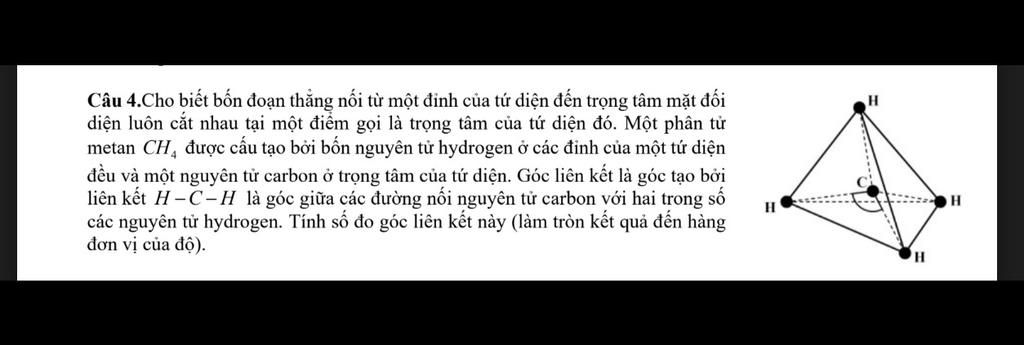 metan CH, được cấu tạo bởi bốn nguyên tử hydrogen ở các đỉnh của một tứ diện
