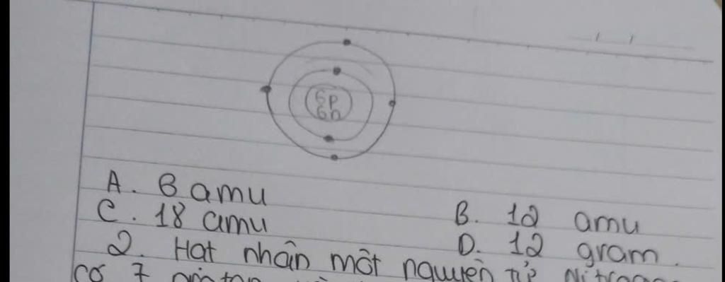 `->` Theo bảng tuần hoàn nguyên tố hóa học, nguyên tử carbon có khối lượng là 12 (amu)