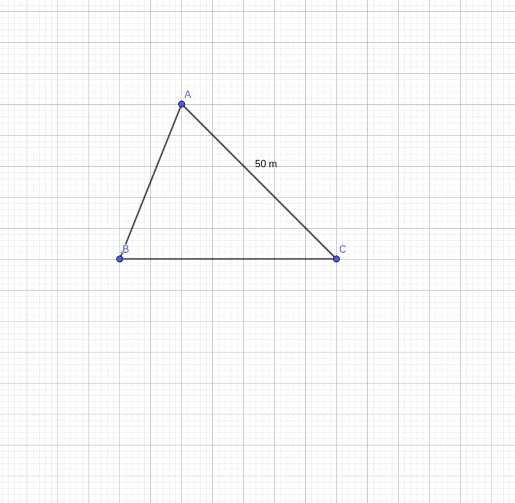 để đo khoảng cách từ vị trí a trên bờ sông đến vị trí b của con tàu bị mắc cạn gần một cù lao, bạn minh đi dọc bờ sông từ vị trí a đén vị trí c cách a một khoảng bằng 50m và đo các góc bac=70độ,bca=50độ. tính khoảng cách ab theo đơn vị mét( làm tròn kết quả đến hàng đơn vị)