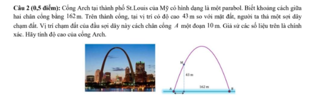 Suy ra độ cao của cổng là $h \approx 185,6 \mathrm{~m}$.