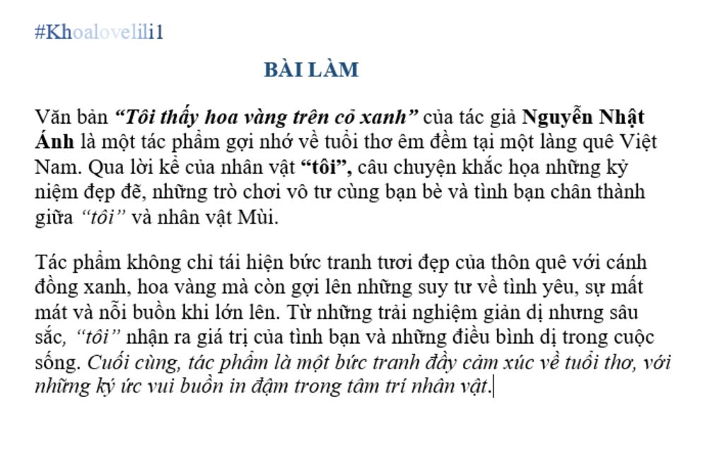 Tóm tắt văn bản tôi thấy hoa vàng trên cỏ xanh từ trẻ còn thôn quê đến chìm