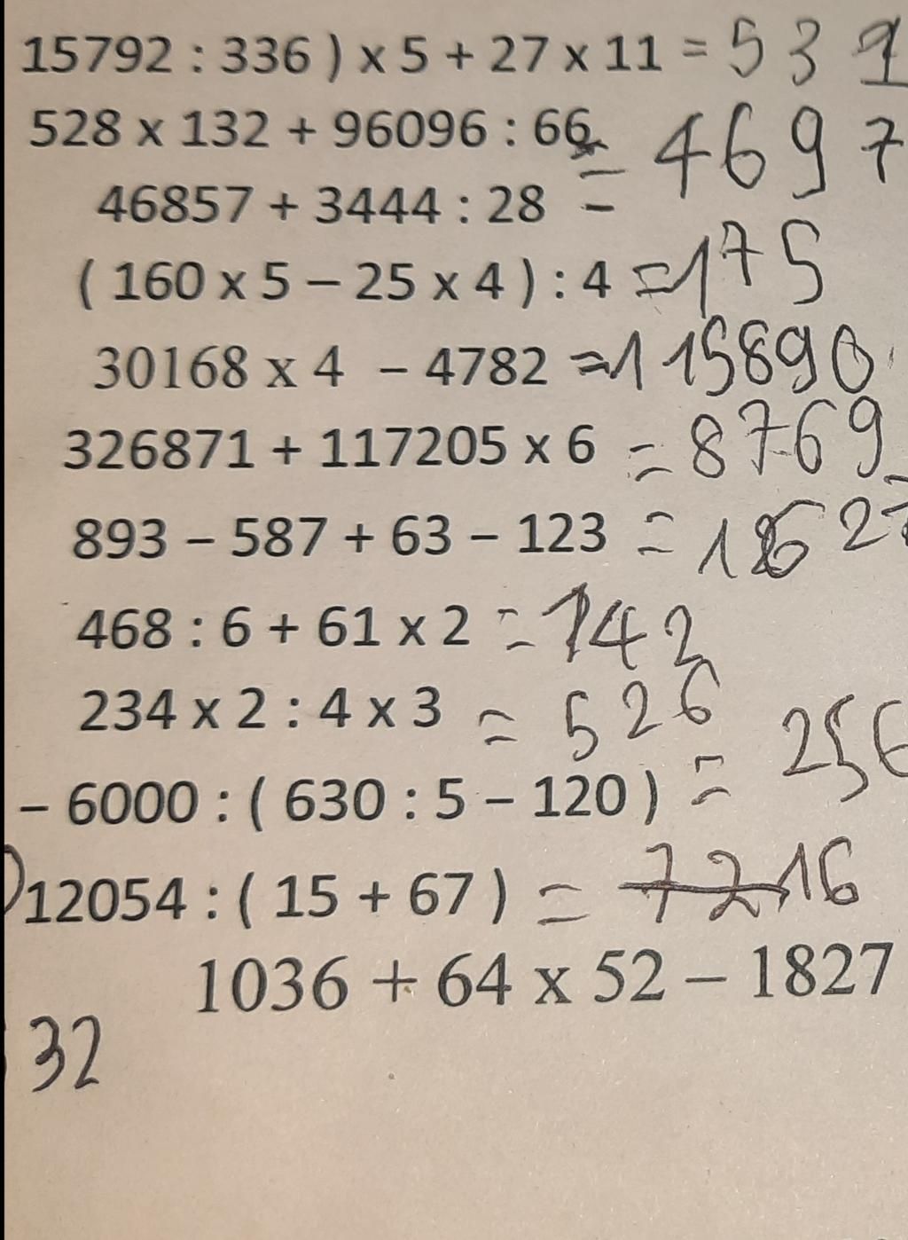 Giải thích các bước giải:(15792÷336)×5+27×11=47×5+27×11=235+297=532