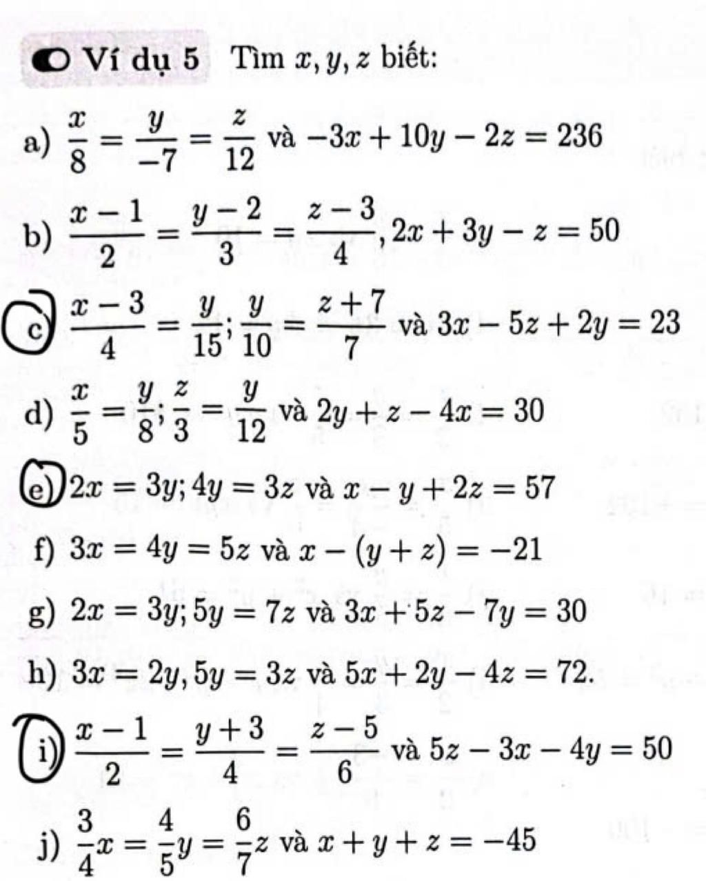 f) 32 = 4y = 5z và 2 – (y + z) = −21