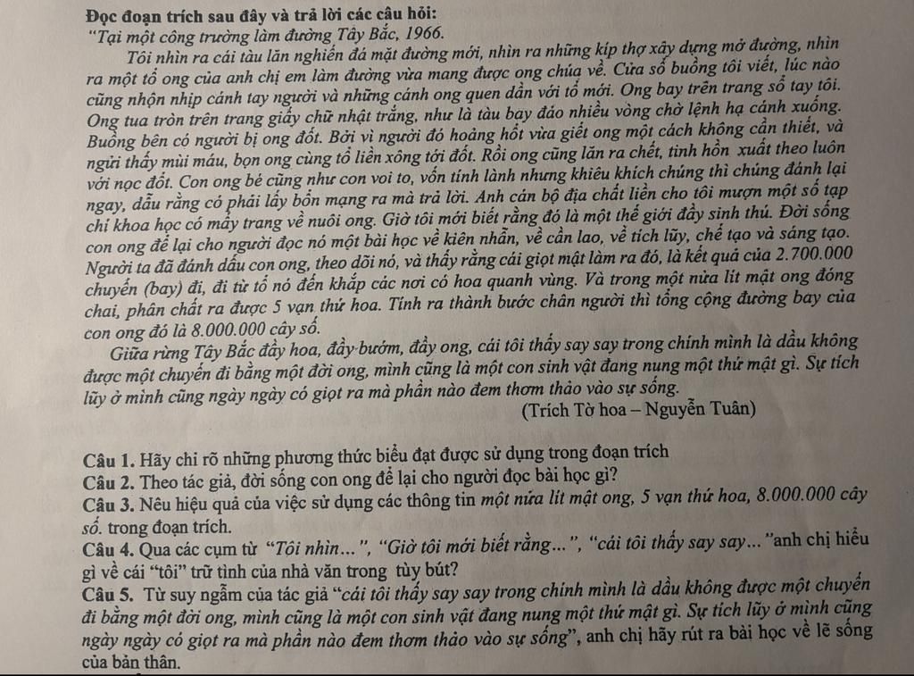 Đọc đoạn trích sau đây và trả lời các câu hỏi: