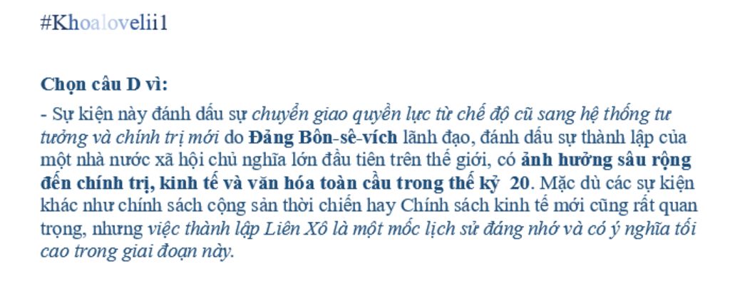 A. đảng Bôn-sê-vích thực hiện Chính sách kinh tế mới ( Lê-nin) khởi xướng.
