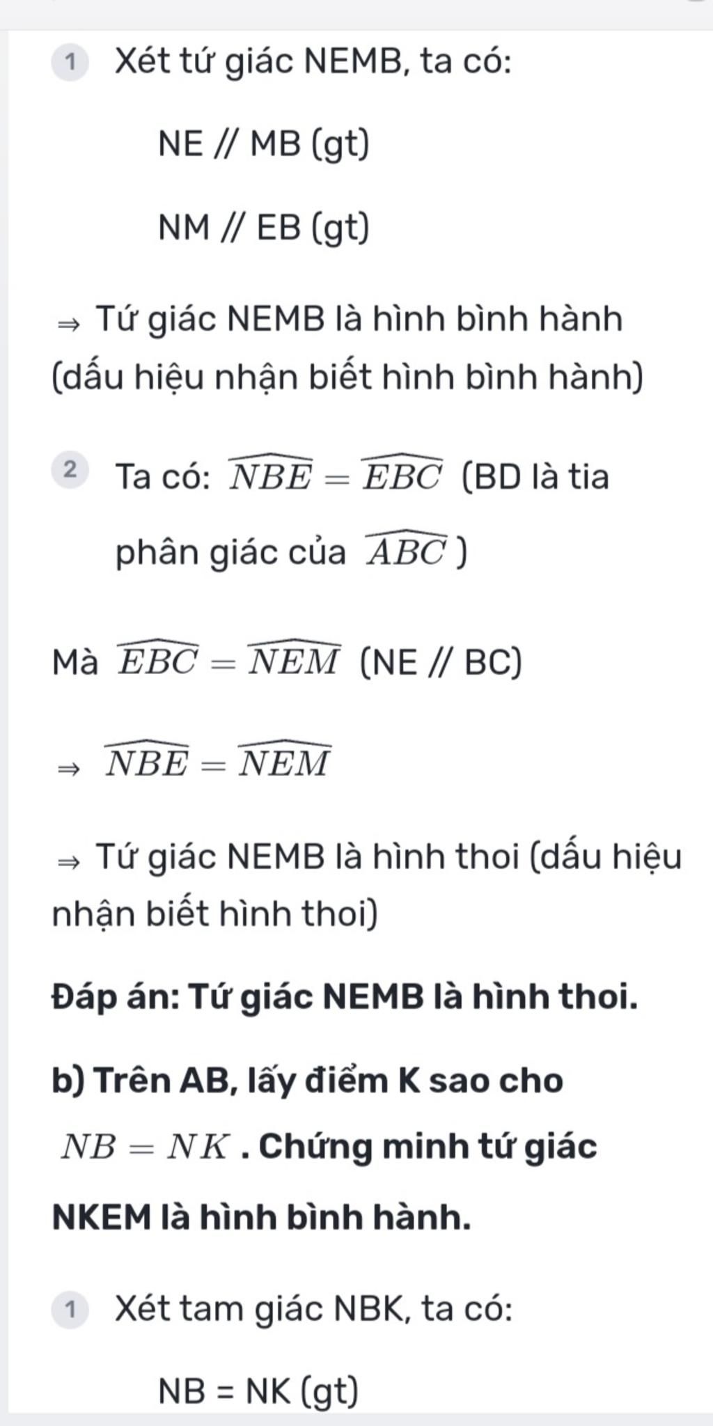 a) Chứng minh tứ giác NEMB là hình thoi.