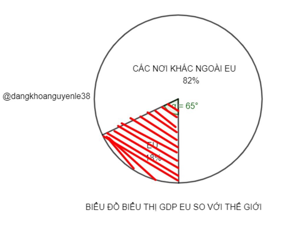 Cho biết GDP của thế giới năm 2020 là 84 705,4 tỉ USD,GDP của EU năm 2020 là 15 276 tỉ USD. Hãy vẽ biểu đồ tròn thể hiện tỉ lệ GDP của EU trong tổng GDP của thế giới.