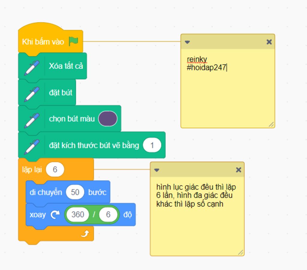 Tạo chương trình điều khiển nhân vật di chuyển theo đường đi là một lục giác đều `(`Scratch`)`