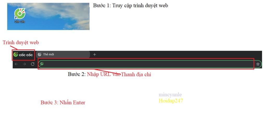 (Hình bên dưới là bước để truy cập trình duyệt web Cốc Cốc)