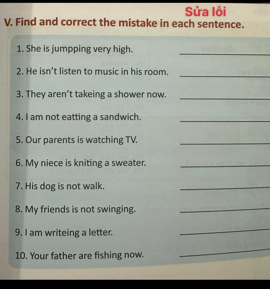 7. Sai từ ''Walk'' sửa thành ''Walking''