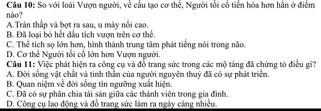 Thì người tối cổ có thể tích sọ lớn hơn vì đã đc tiến hóa, hình thành trung tâm phát triển nói trong não là đáp án thik hợp