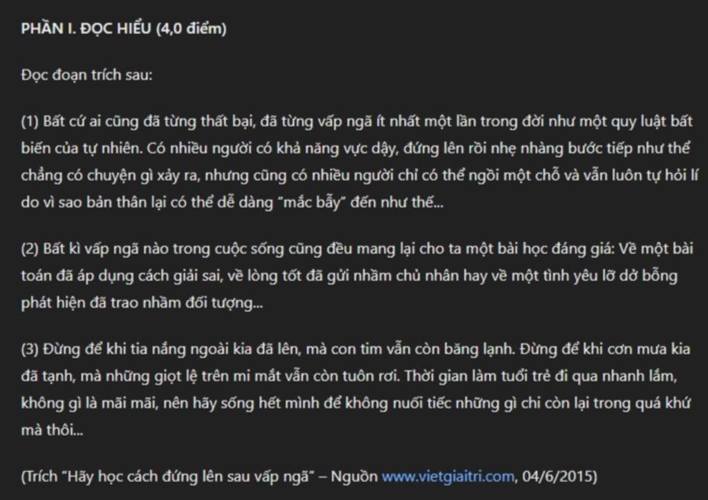 Câu 2 (0,5 điểm): Trong đoạn (1), tác giả đã dùng lí lẽ nào để khẳng định: "Có nhiều người có khả năng vực dậy, đứng lên rồi nhẹ nhàng bước tiếp như thể chẳng có chuyện gì xảy ra, nhưng cũng có nhiều người chỉ có thể ngồi một chỗ và vẫn luôn tự hỏi lí do vì sao bản thân lại có thể dễ dàng 'mắc bẫy' đến như thế..."