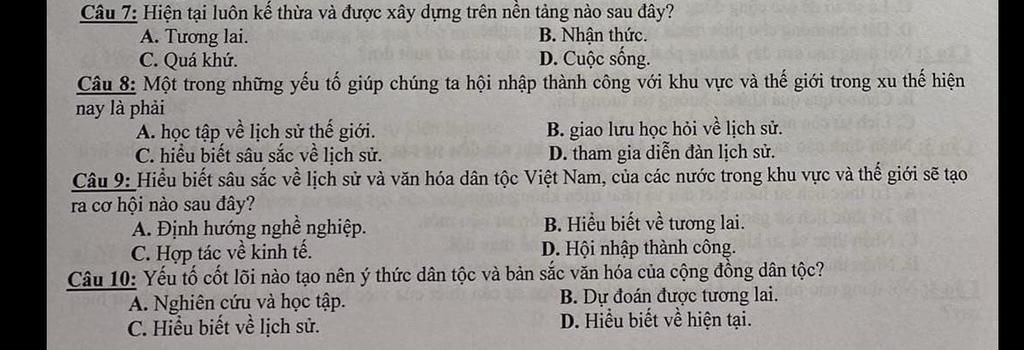 Giải thích: Khi hiểu rõ về lịch sử và văn hóa của các dân tộc, chúng ta sẽ có sự tôn trọng, thấu hiểu và dễ dàng hòa nhập với cộng đồng quốc tế.