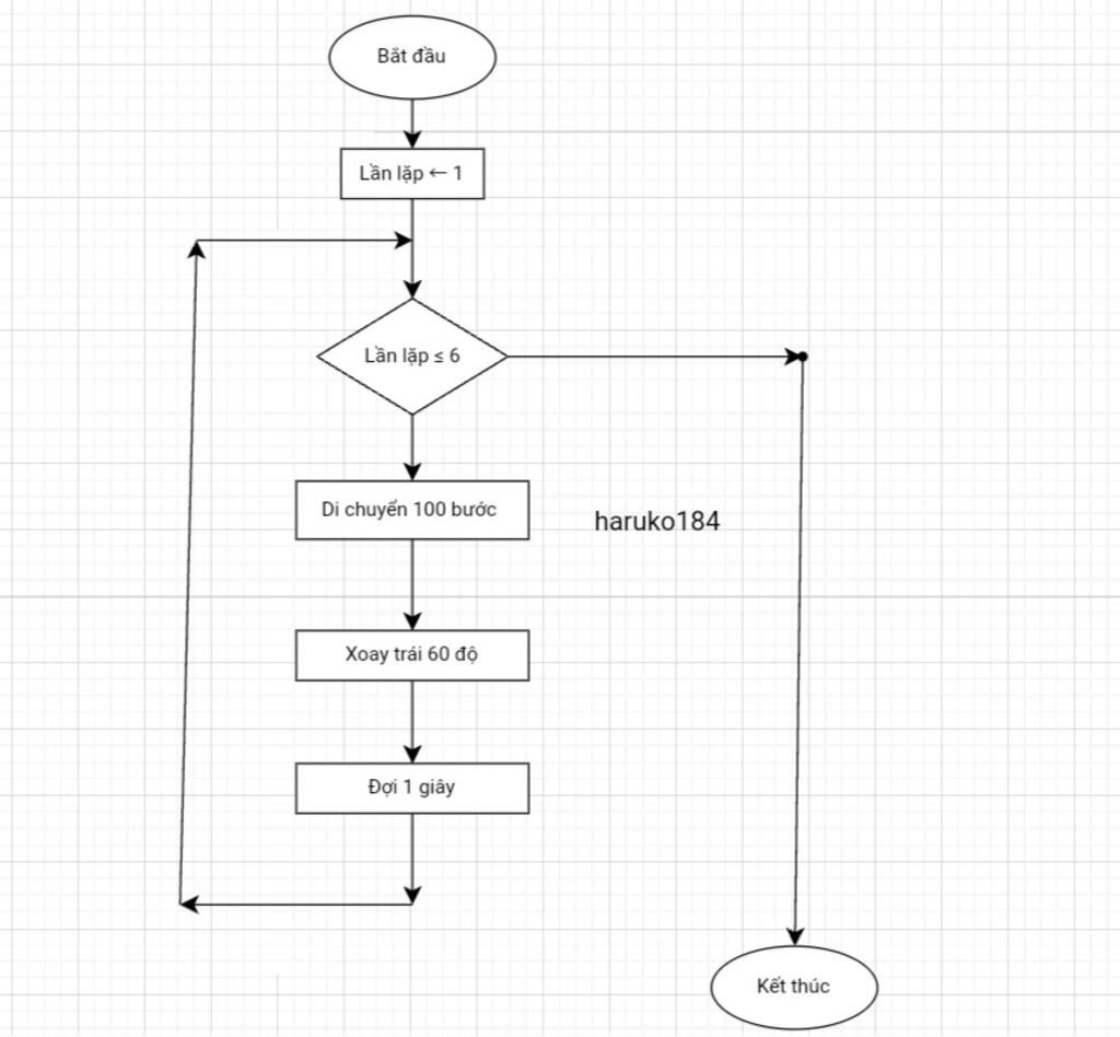 em hãy vẽ sơ đồ khối mô tả thuật toán điều khiển nhân vật di chuyển sao cho quãng đường đi tạo thành hình lục giác đều