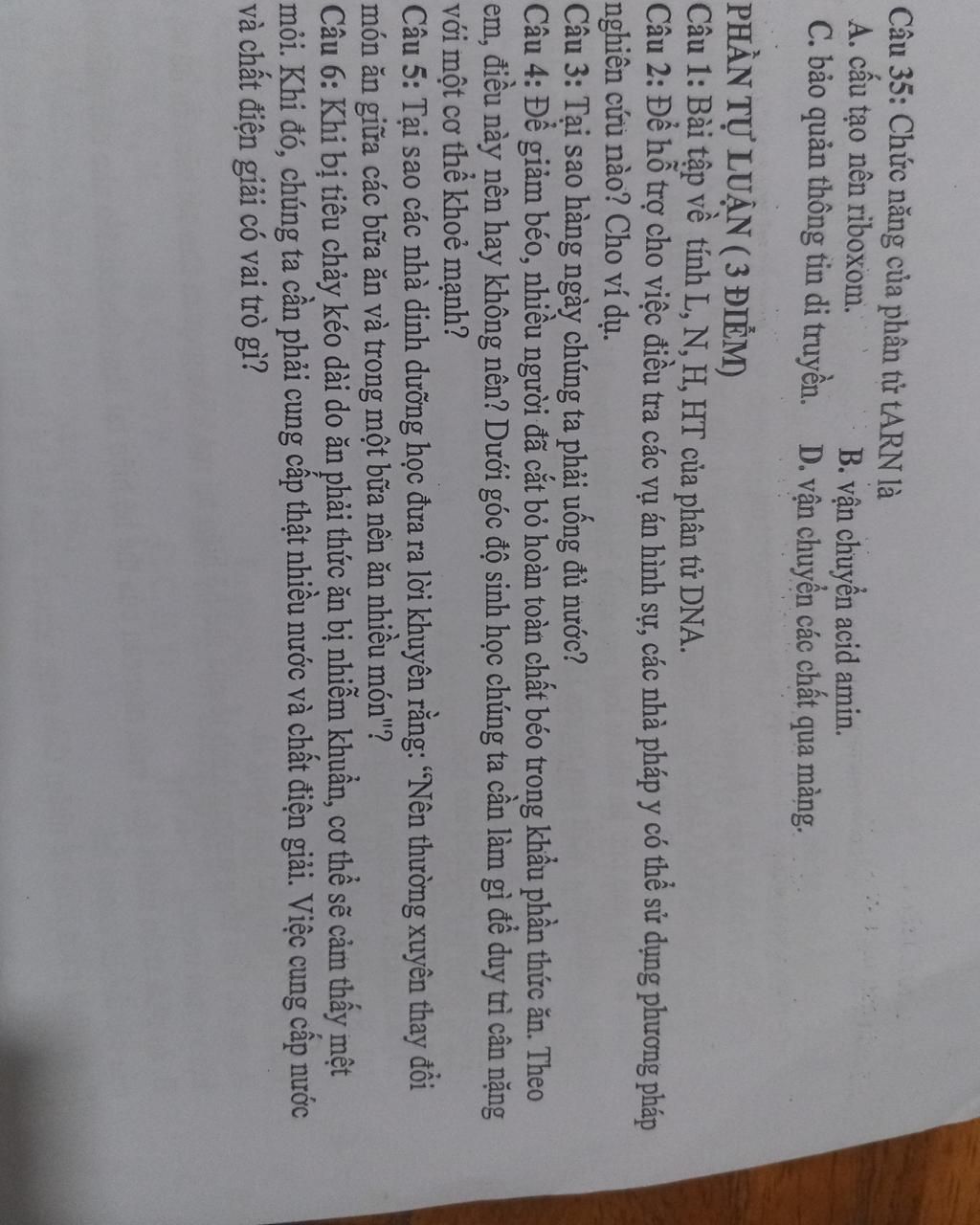 Câu 35: Chức năng của phân tử tARN là