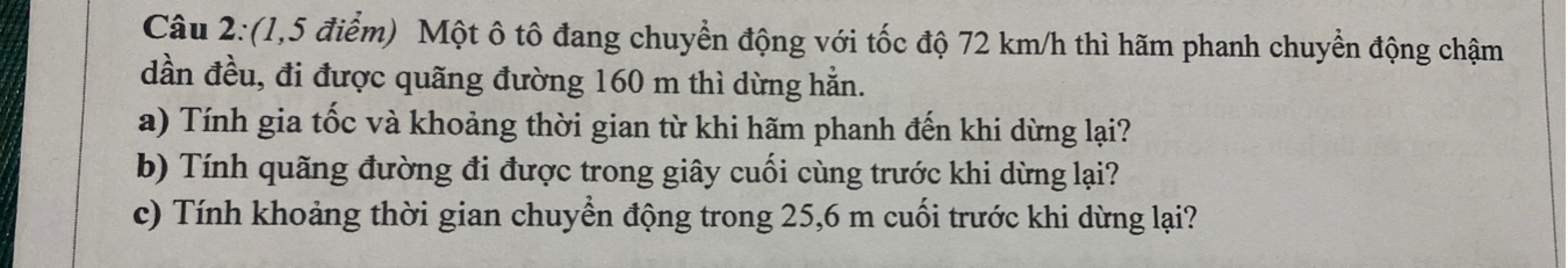 Khoảng thời gian từ khi hãm phanh đến khi dừng lại là: