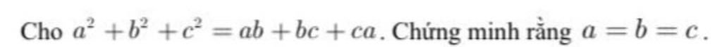 Ta có `a^2+b^2+c^2=ab+bc+ca`