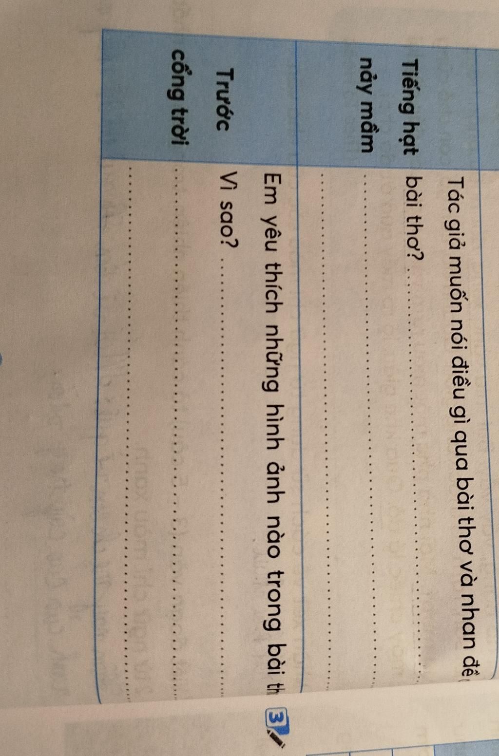 -Tiếng hạt nảy mầm: tác giả muốn nói đến tình yêu thương của cô giáo dành cho các bạn học sinh khiếm thính và thế giới âm thanh được cô chuyển tải.