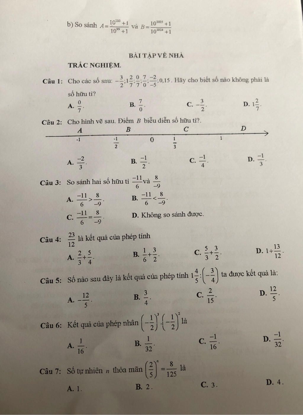Mà từ 0 đến B cách nhau 2 đoạn nên B = $\frac{-2}{6}$ = $\frac{-1}{3}$