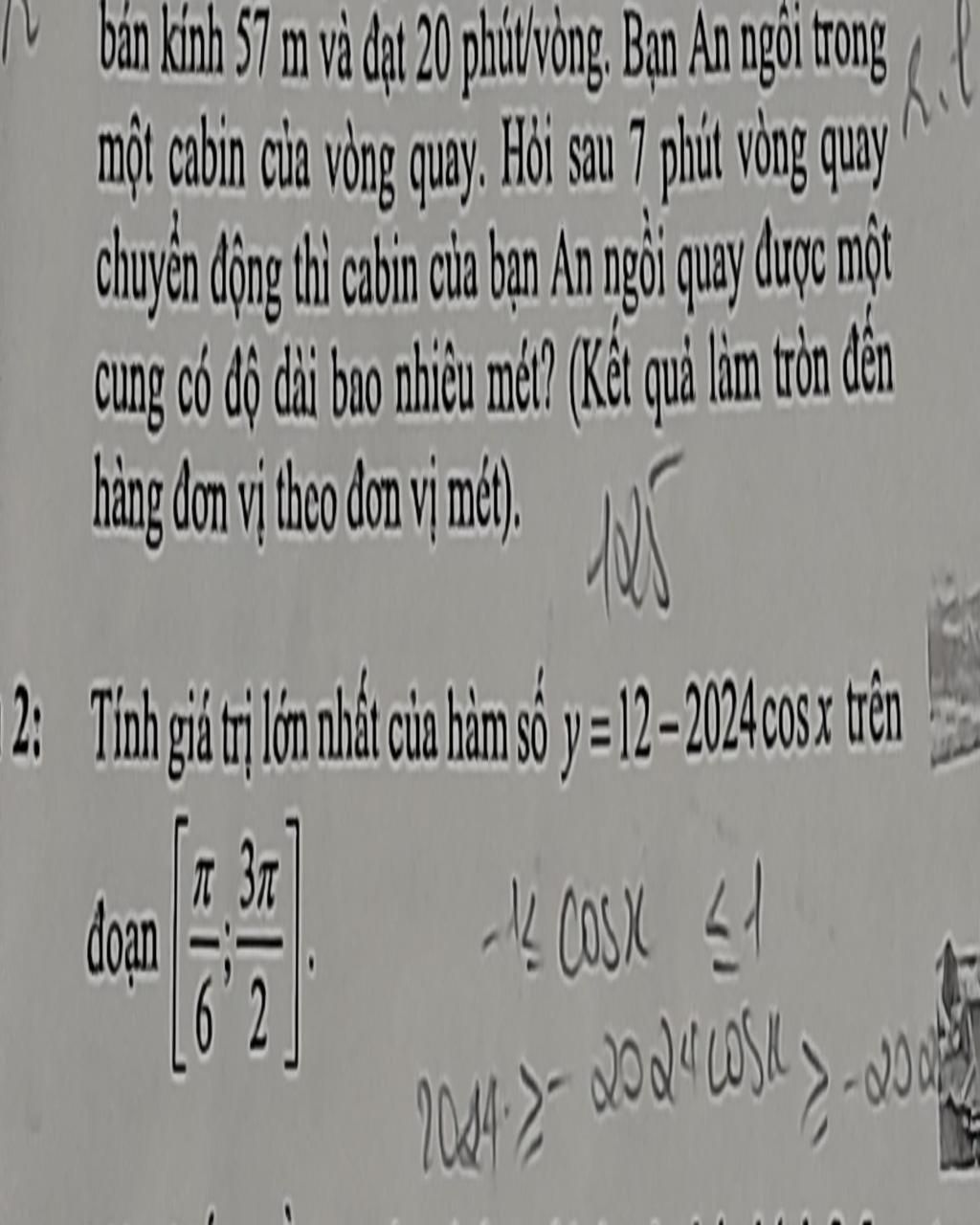 bán kính 57 m và đạt 20 phút/vòng. Bạn An ngôi trong