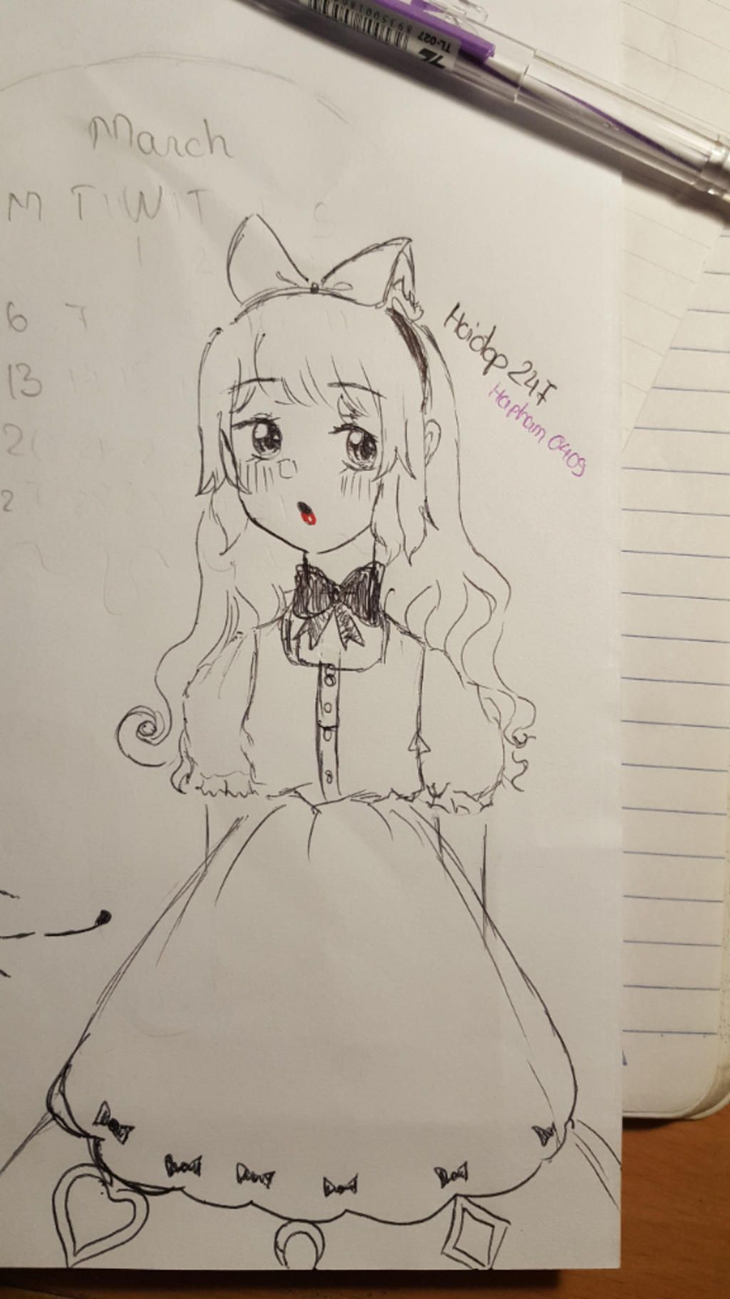 Bạn ơi mình vẽ thẳng không phác trước nên bức không được tự nhiên và cân đối lắm. Mong bạn nhận.