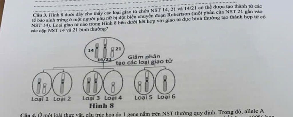 `-` Loại 5: Gồm 2 chiếc NST 14/21 và 21 ⇒ Đột biến thừa.