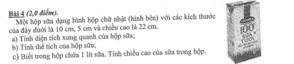 Thể tích hộp sữa là