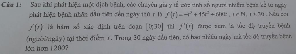 f(t) là hàm số xác định trên đoạn [0;30] thì f'(t) được xem là tốc độ truyền bệnh