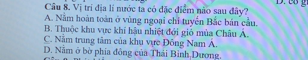 `=> C` Nằm trung tâm khu vực Đông Nam Á