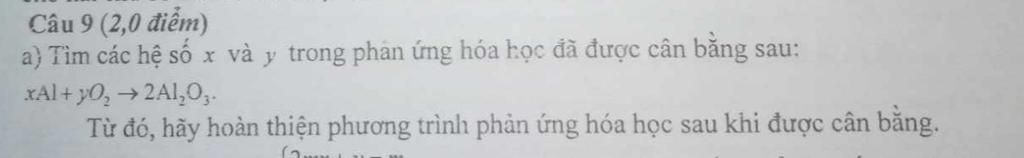 Khi đó, `4Al + 3O_2` $\longrightarrow$ `2Al_2O_3`