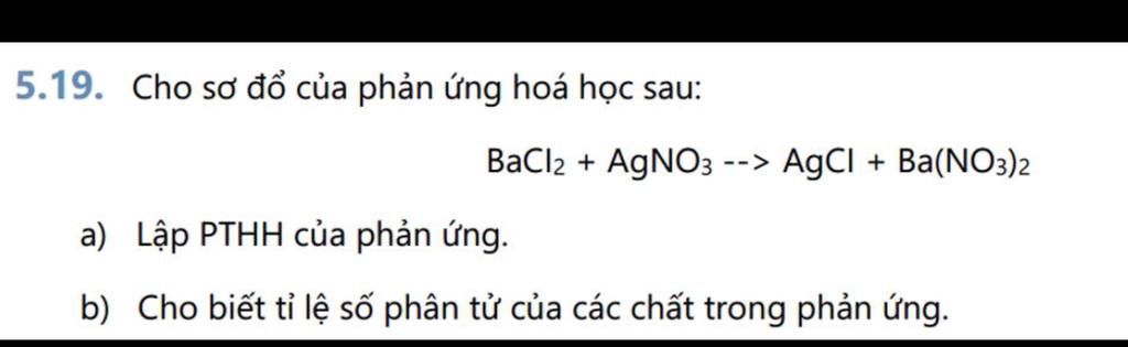 phân tử BaCl2 : phân tử AgNO3 : phân tử AgCl : phân tử Ba(NO3)2 =1 : 2 : 2 : 1