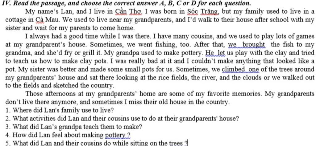 `-` Dẫn chứng: I was born in Sóc Trăng, but my family used to live in a cottage in Cà Mau.