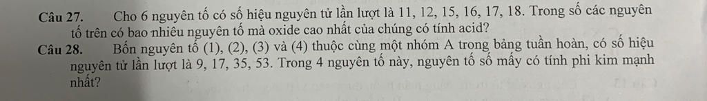 ` Z = 17 => CHe: [ Ne ] 3s^2 3p^5` `=>` Phi kim