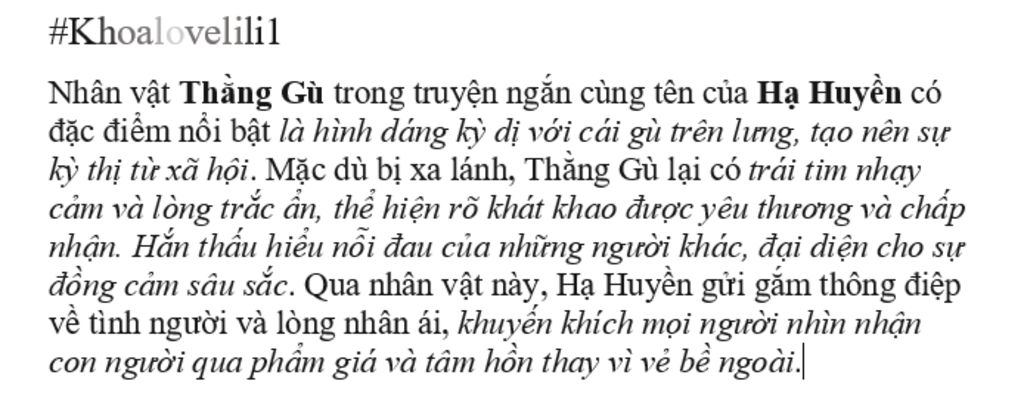 phân tích đặc điểm nhân vật thằng gù rong truyện ngắn cùng tên của tác giả hạ huyền