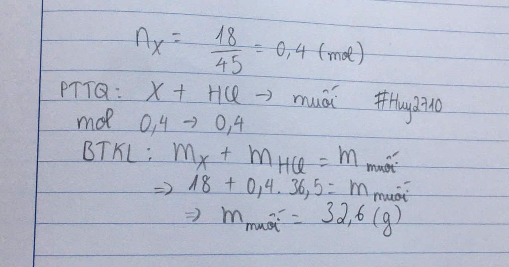 cho 18 gam hỗn hợp X gồm ethylamine và dimethylamine tác dụng vừa đủ với dung dịch HCl. Khối lượng muối thu được sau phản ứng là bao nhiêu gam?
