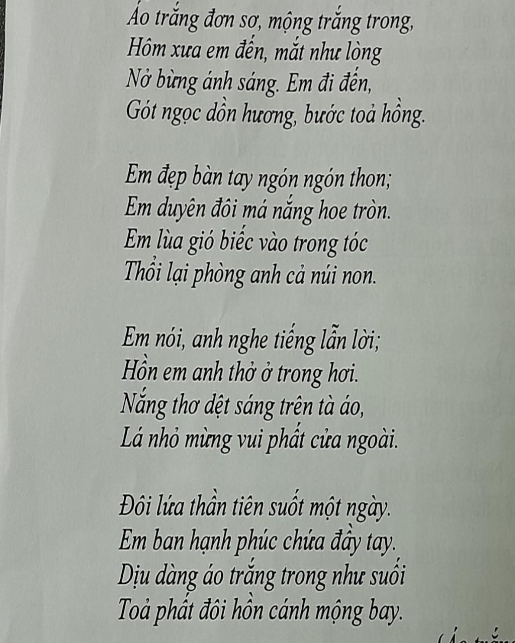 Phân tích đánh giá những nét đặc sắc về cấu tứ và hình ảnh trong bài thơ:" Áo trắng " của Huy Cận