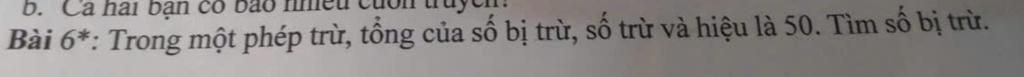 `->` Số bị trừ `=` `1/2` `xx` `50` `=` `25`