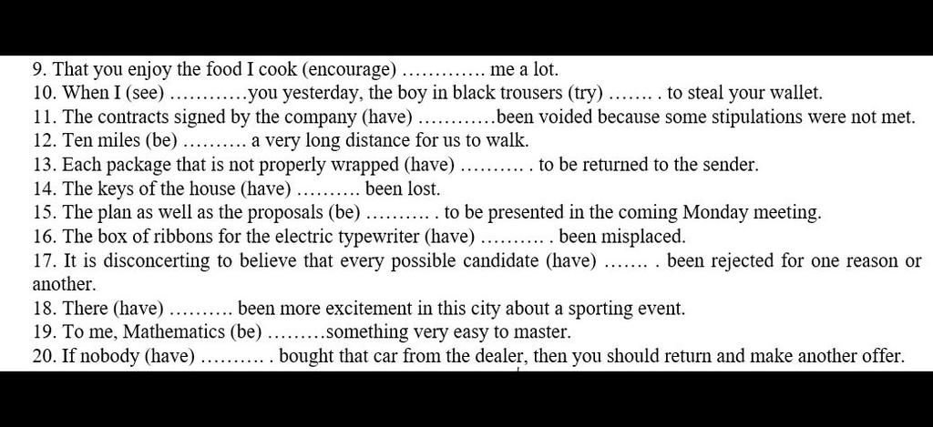 11.have ở đây động từ have bộ nghĩa cho danh từ the contracts signed là danh từ số nhiều nên ta giữ nguyên