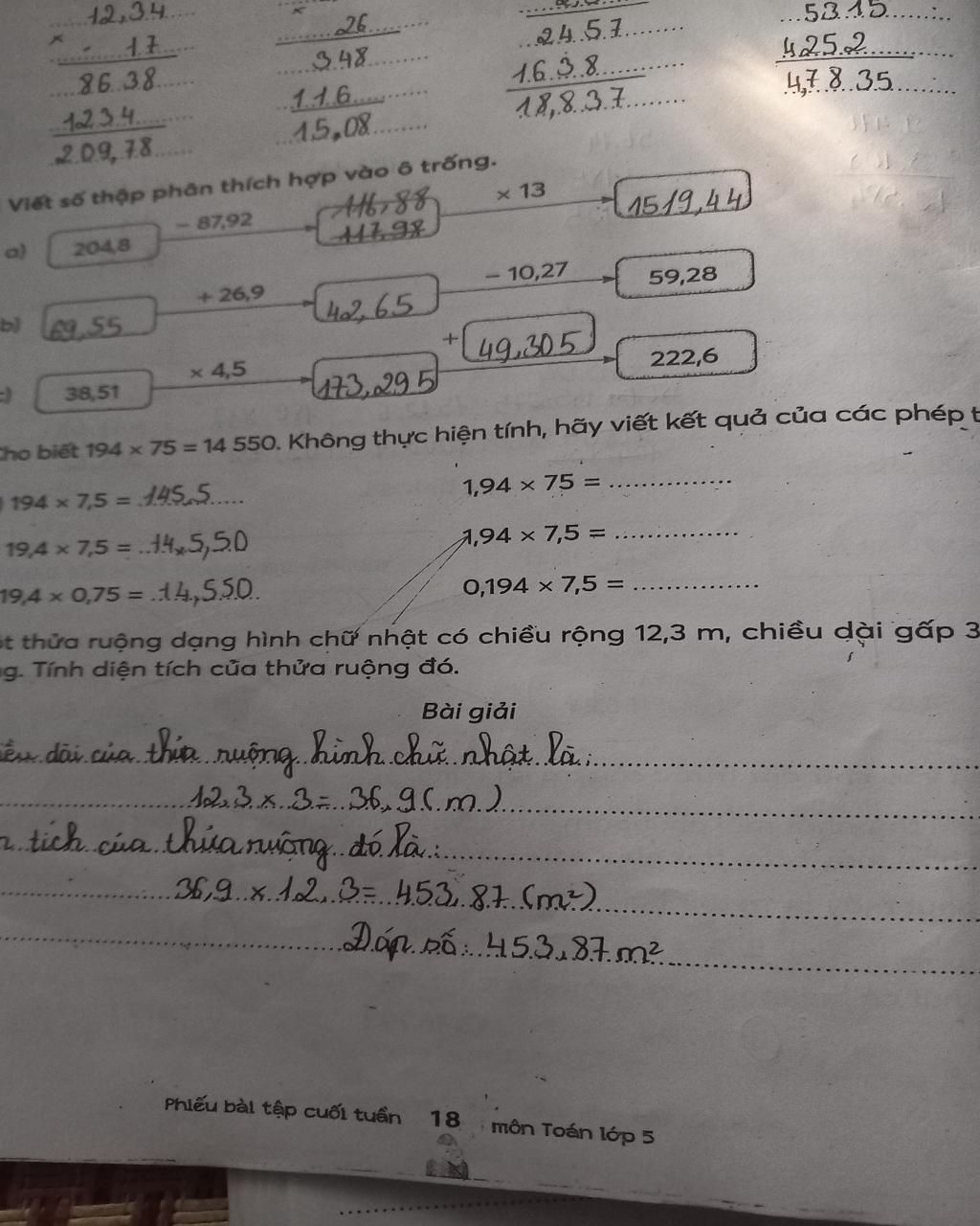 cho biết 194×75=14550.Không thực phép tính,hãy viết kết quả của các phép tính sau.