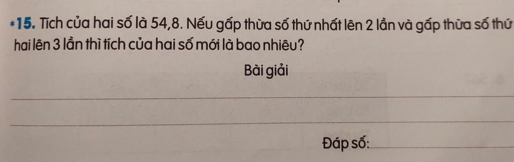 Nếu gấp thừa số thứ nhất lên `2` lần và gấp thừa số thứ hai lên `3` lần thì tích mới gấp lên `2 xx 3 = 6` lần.