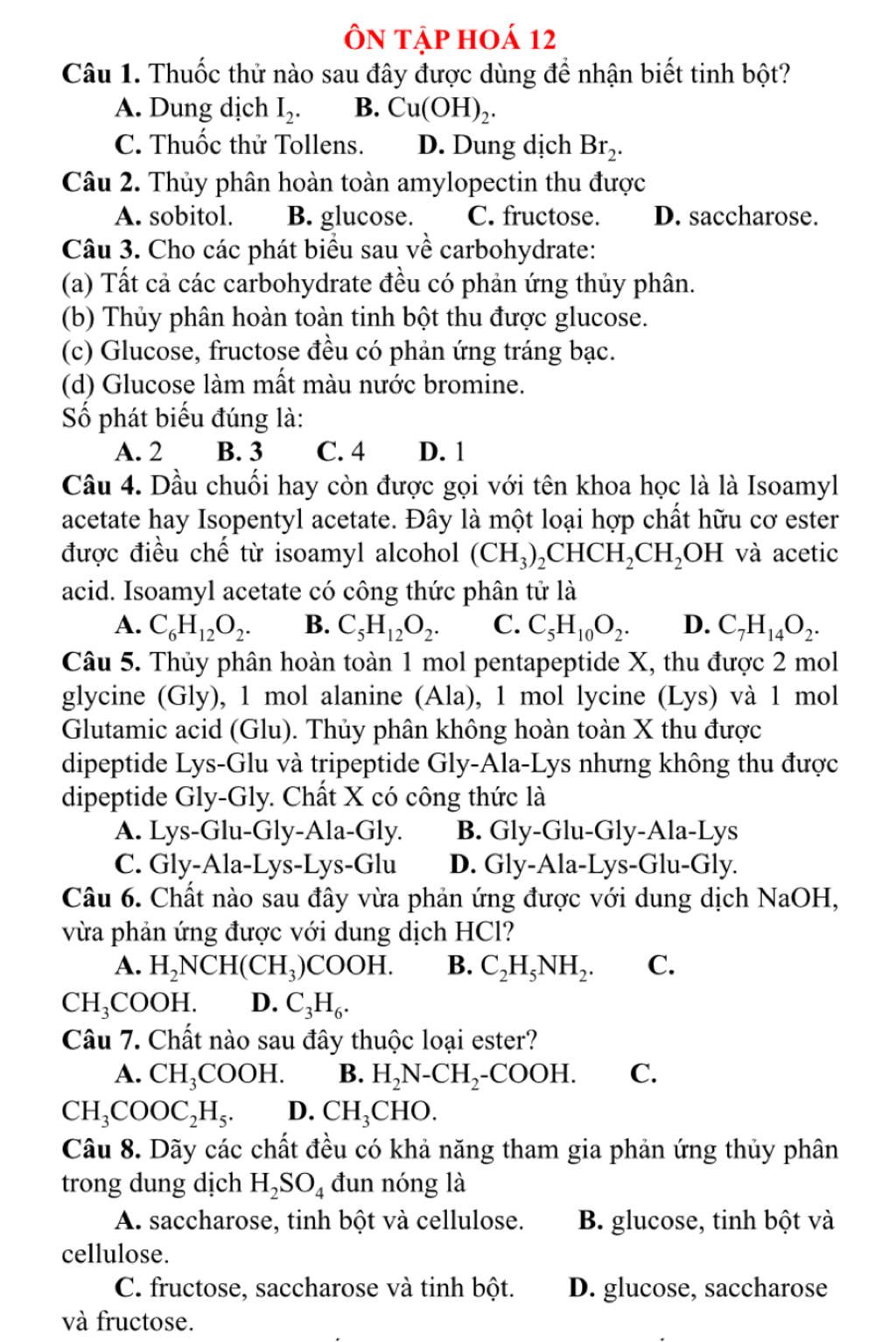$+\text{Chỉ các disaccharide và polysaccharide mới có thể thủy phân.}$