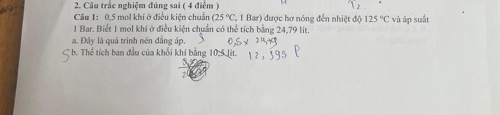 a) Đây không phải là một quá trình nén đẳng áp, vì thể tích của khối khí sẽ tăng lên khi nhiệt độ tăng trong khi áp suất không đổi. Vậy đây là một quá trình giãn nở đẳng áp.