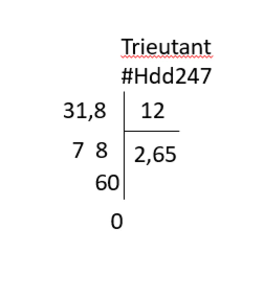 `31,8 : 12 = 2,65`